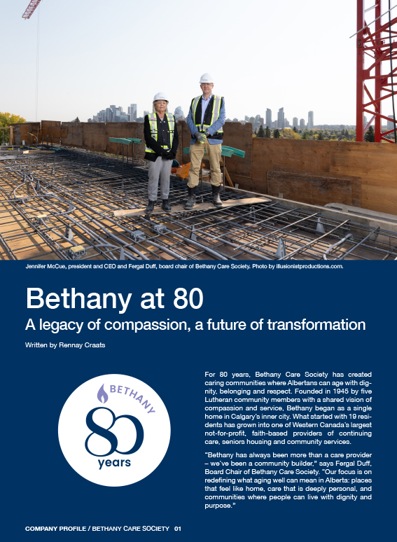 “Bethany has always been more than a care provider – we’ve been a community builder,” says Fergal Duff, Board Chair of Bethany Care Society. “Our focus is on redefining what aging well can mean in Alberta: places that feel like home, care that is deeply personal, and communities where people can live with dignity and purpose.”